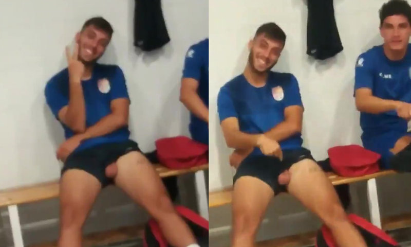 We’re far from an accidental exposure here! This sexy footballer intentionally exposes his big balls in the locker room while his team mate records a video. This hot guy even points out his balls in case someone doesn’t notice them, lol! Don’t miss this exciting video from the EricDeman video library.