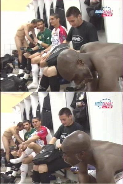 This footballer is not the first one who appeared totally naked during an interview in the locker room after a match. French footballer Geoffrey Doumeng has been caught while undressing and revealing his dick to the cameras. EricDeman has just released the full video.