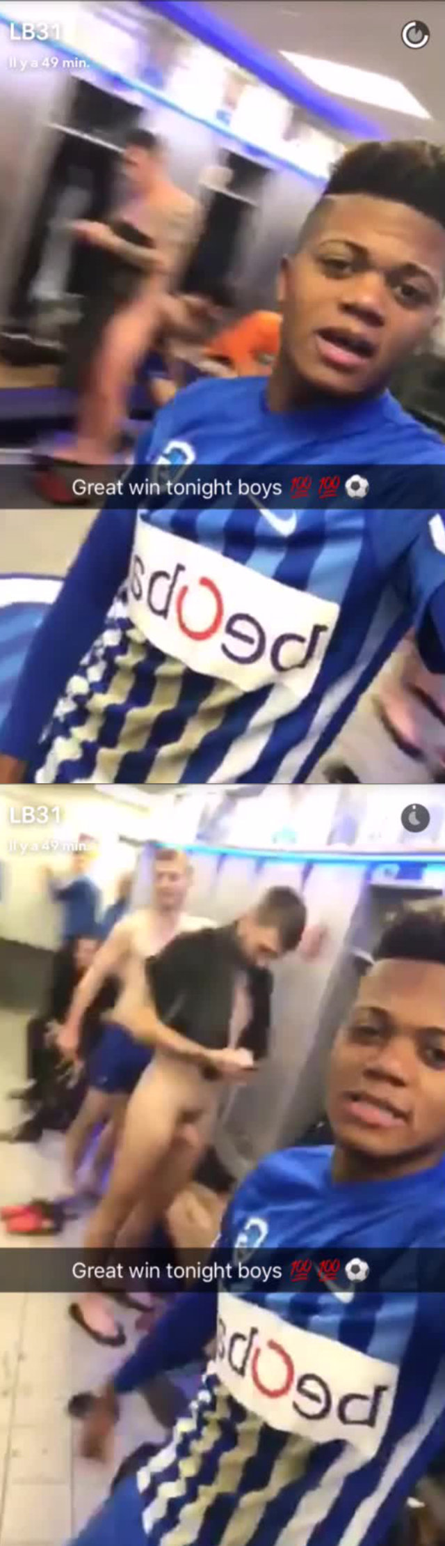 The footballer from the Genk football team who took this Snapchat selfie was too excited about the last win, he took some selfies but do you think he realized that his mate was totally naked in the background?