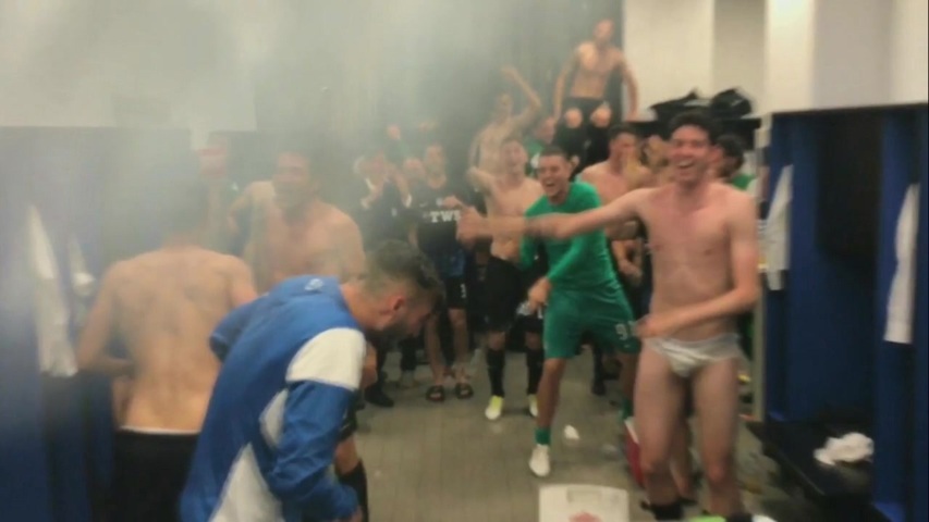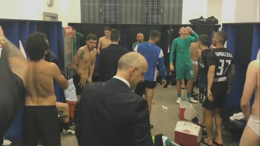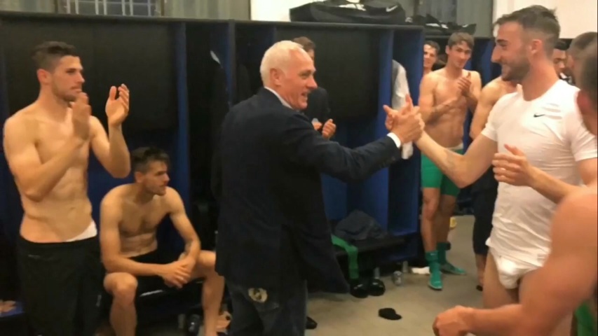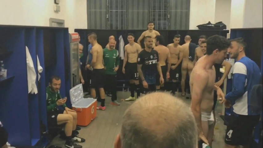 Let’s see what happens in this Italian soccer lockerroom crowded of studly men. The cameras are in for a postgame interview and we can admire them undressing and exposing their big underwear bulges. The full lenght video is available at EricDeman.