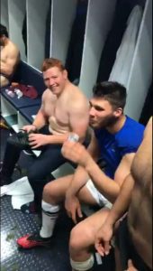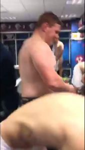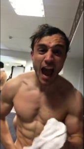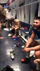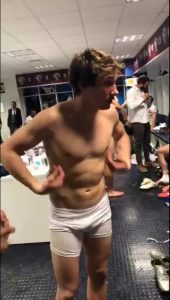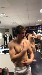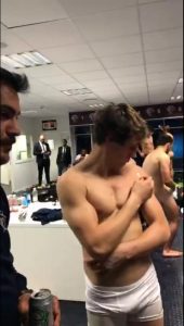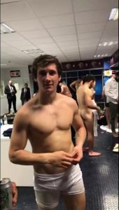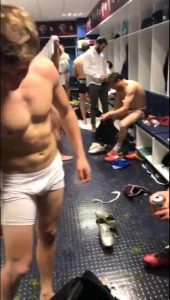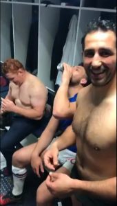 Watch these French rugby players celebrating in the lockerroom after the game against Toulose club. While some of them don’t get completely naked, but show their underwear bulges, other players appear totally naked and show their dicks to the camera. Enjoy this picture gallery and watch the full video (more than 6 mins) from EricDeman.