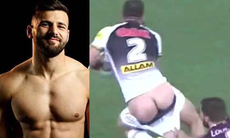 Now it’s time to see him in action! This is one of the hottest accidental exposures from sportsmen ever. Watch rugby player Josh Mansour accidentally revealing his bubble ass during a game.