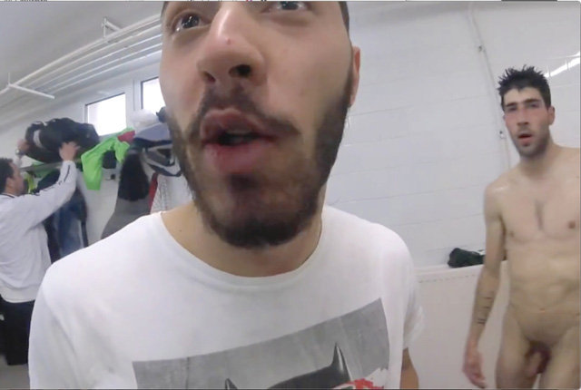 You know it may happen during locker room interviews. Watch this Spanish footballer from the Lakua Arriaga team appearing totally naked from the shower room. Enjoy his hairy uncut cock, find all the animated gifs and the full video from EricDeman video library.