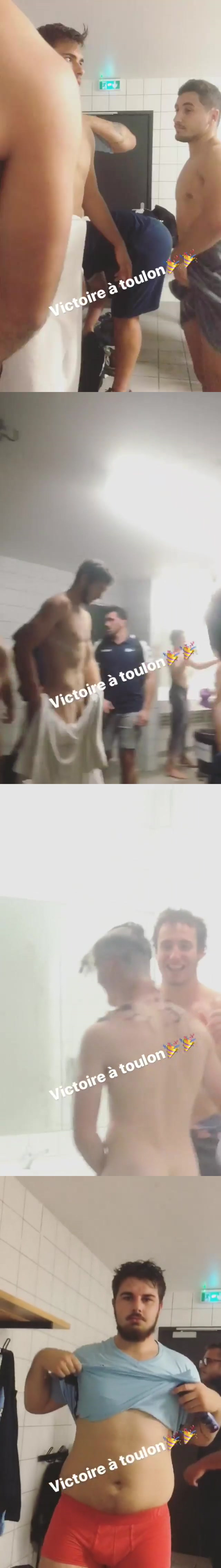 Let’s see how Bayonne rugby players celebrate a winning game in the lockerroom. Some of them don’t care about cameras inside the changing room and they even show their dicks freely!