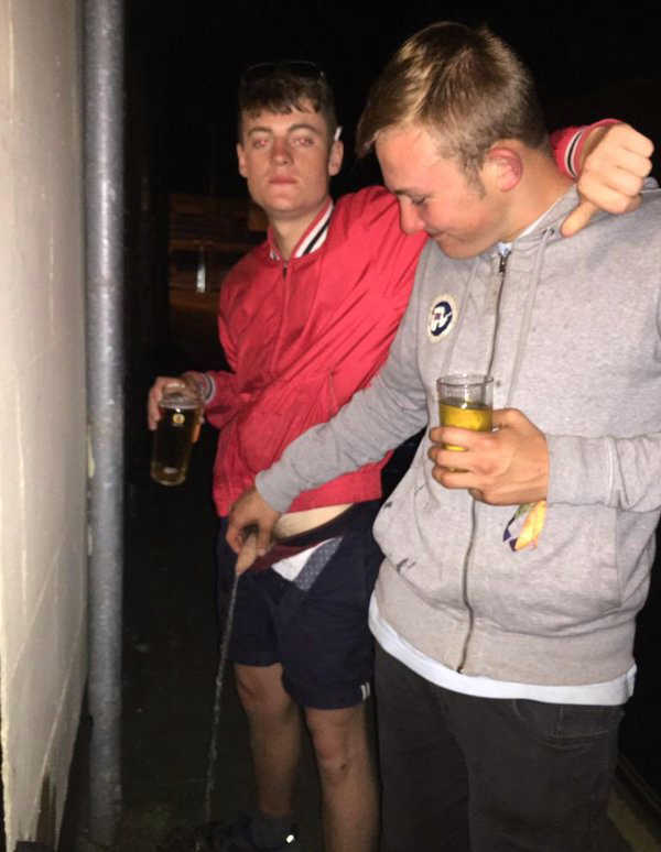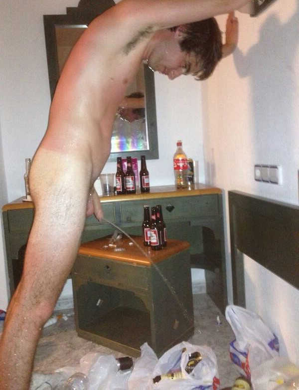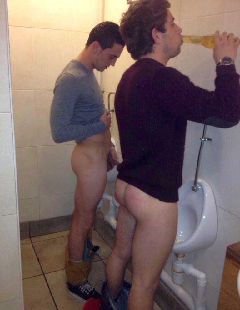 We’ve seen guys pee in their own mouths, we won’t be shocked to see other guys pee on the floor or in a sink. But today’s photos are really hot and a little weird too. The cover photo is the one that’s a little more quirky, maybe because that guy is holding his friend’s dick in his hand while pissing. But he doesn’t make any bends, he gladly gets help. A helping hand is always welcome. As for the other two boys: in order not to make him dirty the floor of the balcony, his friend holds up a glass and makes him piss in there. Then there’s the usual goody-goody who pisses in the kitchen sink: a scene we’ve seen before, but his uncut dick is too cute! Another very funny scene is to see two guys who, in order to piss at the urinals, pull down their pants, so they show their delicious asses too. It will be a nice surprise for anyone who enters the restroom at that time! The last picture is no less, in fact it is really awesome. First you should take a look at how many bottles of beer are in this room to understand the mental state of this guy: in the grip of alcohol, he leans with his hands on the wall and pisses on the floor. Will he clean up after himself?