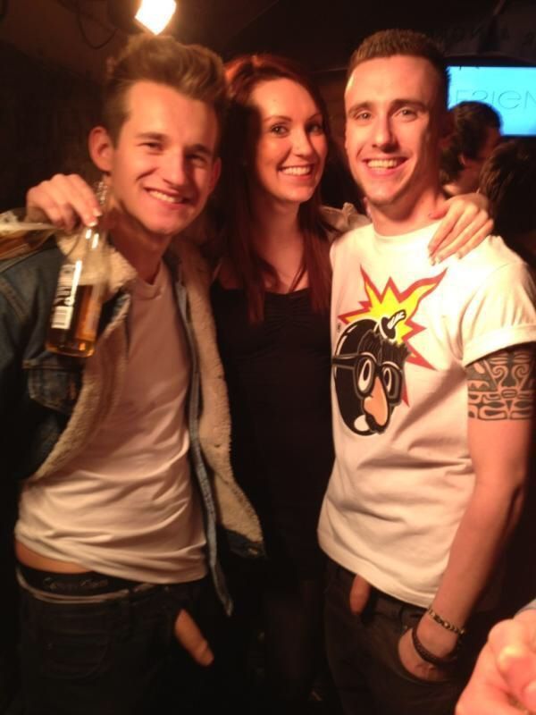 This picture is probably the hottest one: do you agree with me? I’m still wondering if the girl is aware that those two straight guys pulled their big uncut dicks out before taking the selfie.