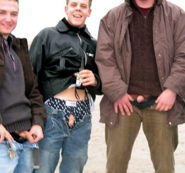 Here you are three pictures from groups of straight guys who are willing to show their dicks on camera. They’re all in public places and they don’t care about people who could see’em. They love to show off their big dicks and they’re proud of that. As you can see, alcohol helps to lose inhibitions… at least one can of beer is present in each shot!
