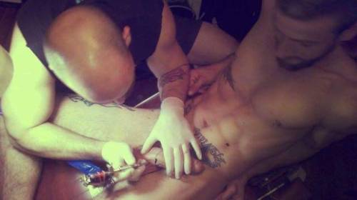 This picture is not suitable for susceptible people, but I have to confess that I find it tremendously exciting. I have never see a guys asking to get his dick tattooed. Here you are…