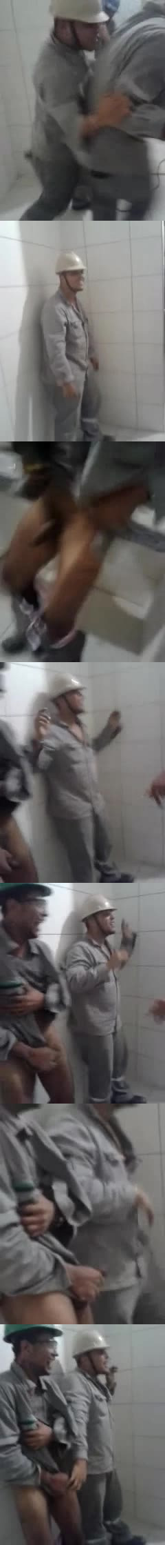 I blogged many times about straight guys who love to show off their bodies and dicks to their friends, but this is the first time I can tell you about a group of workers who took a video during a humiliation to a mate. They pull their dicks out to impress (or disgust) their mate: watch how big they are! The full video is available at EricDeman.