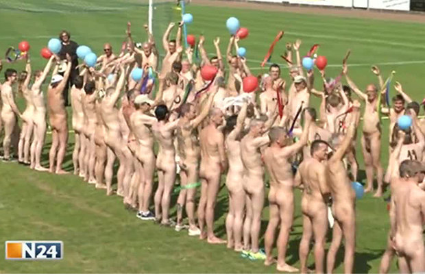 Footballers playing naked I dont’k know much about this football match, but it has been broadcasted on a German TV network...