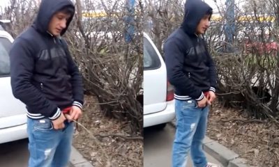 Watch this shirtless guy caught peeing in public. He stopped to take a leak, finding a “safe” place. Is it really...