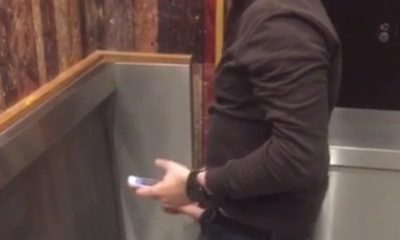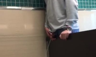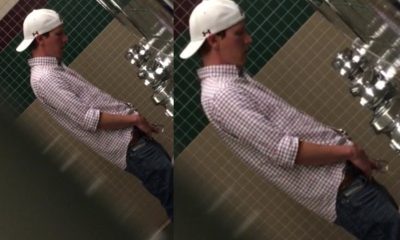 Enjoy this spycam video recorded in a college restroom: this dude has been secretly filmed while taking a piss and he...