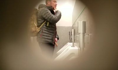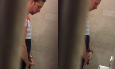 This guy has been caught while taking a leak at the urinals, the spycam has been placed safely so it doesn’t...