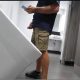 This hung man has been secretly filmed while taking a leak at the urinal in a restroom. Look at how long...