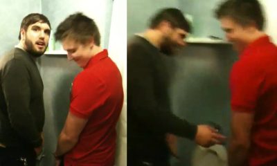 This is probably another dare between straight ruggers. These two rugby players have been filmed while peeing together in the bathroom....