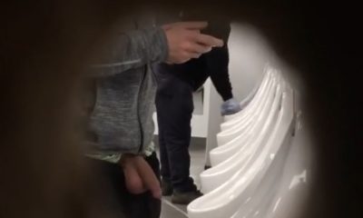 Spy on this hung guy caught by a spycam while peeing at the urinals Take a tour in this restroom and...