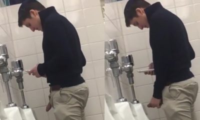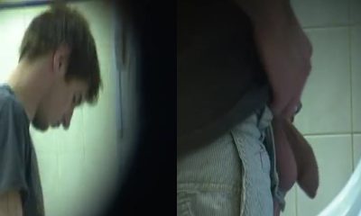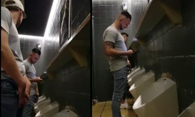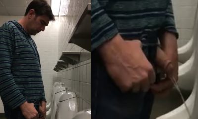 Check out this handsome straight man being spied on while having a wee at the urinals in a public toilet. Watch...