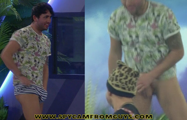Yet another bunch of uncensored pics and gifs from a Big Brother dude: this time we have a UK BB guy who flashed his big bum and his (big) dick on TV. Here you are the pictures showing this nice dude grabbing his dick… soon he stands totally naked, jumping in the house, and his big cock jumps too! Enjoy…