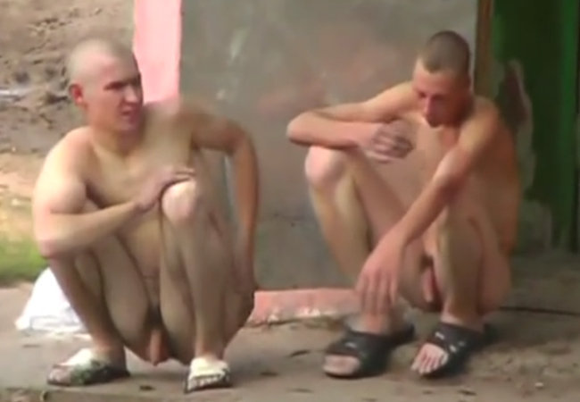 Life is the barracks is so hard, we all know that! This video is documenting how Russian soldiers spend the day. Watch these military guys getting naked and sharing nudity with the other military guys all day long. They even go out to smoke a cigarette completely naked, they grab their dicks in front of each other. These army dudes are not afraid to show their naked bodies, they’re trained for that and they don’t care even if someone gets a boner in the middle of the dormitory.