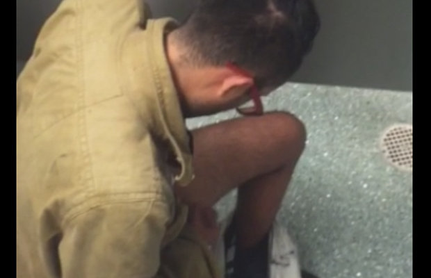 Guy secretly filmed while being in the restroom If you take a quick look at this guy sitting on the bowl...