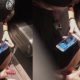 This guy is totally focused on his porn clips on his mobile phone, he can’t notice a tiny spycam placed above...