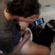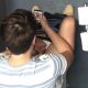 A horny guy has been caught while stroking and wanking in a gym shower. He’s watching some gay porn clips on...