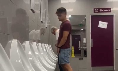 / 1 year agoBlond guy caught peeing hands free at urinals