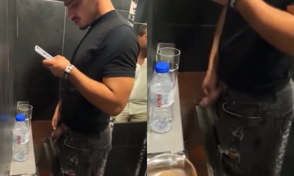 Another guy who is used to spitting while peeing at urinals. Enjoy this stunning video shot with a spycam in the restroom of a club. This dude pulls out his dick, pisses and spits and then leaves. A truly amazing sight.