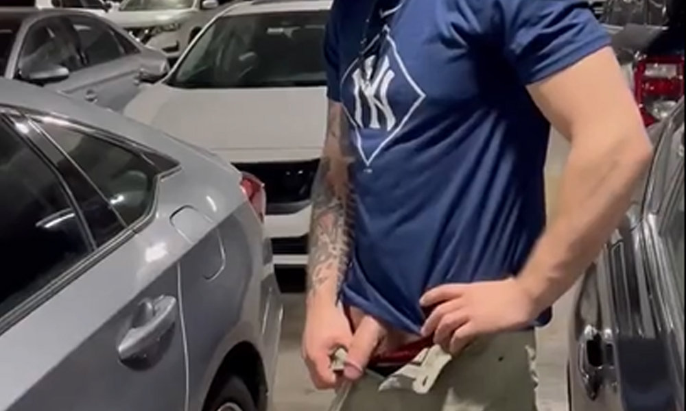It is nothing new that some straight guys like to show off while peeing. Already that they have their dicks out to piss they take the opportunity to highlight their talents. The straight dude in today’s video gives us an amazing show in this parking lot. He pulls out his big dick cut and starts pissing next to a car. The parking lot is full of cars, so someone could come in at any moment. But he doesn’t seem to give a shit and continues to piss quietly.