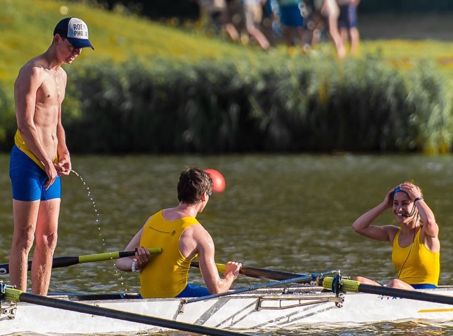 We saw a soccer player pee during a game, but the rower was missing! This is the first time I’ve ever seen a rower, and such a handsome one at that, standing up on the rowing boat, lowering his suit and pulling his cock out to piss in the river while his teammates continue rowing. And there is also a girl who seems very amused by the situation. It must have been quite a sight from the other side of the river!