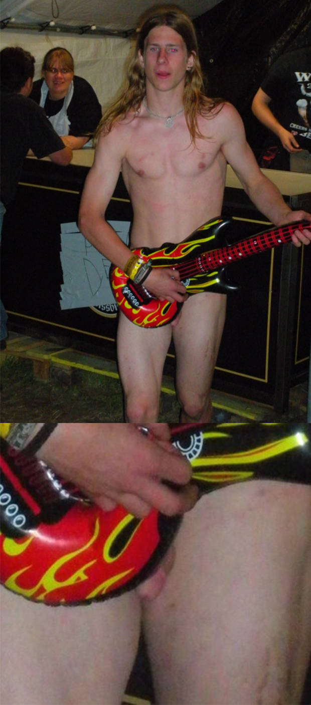 Today there’s a hot and wild updated on ERICDEMAN: these guys are performing totally naked in public. You can see that they cover their dicks with the guitars but there’s an accidental exposure of the cock.