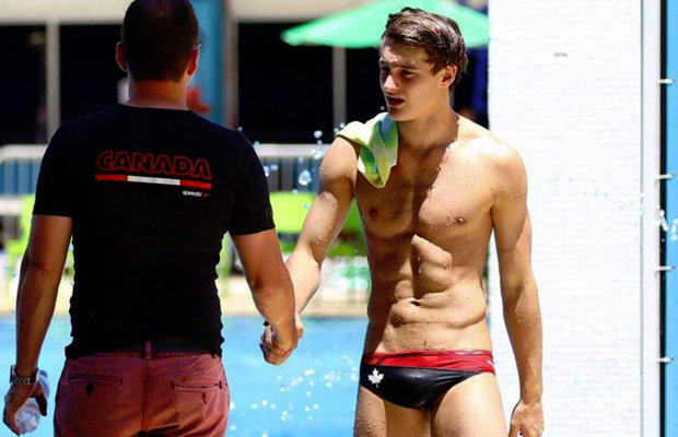 International diver Philippe Gagné shows his big bulge under the Speedo. I wish to see him in his birthday suit!